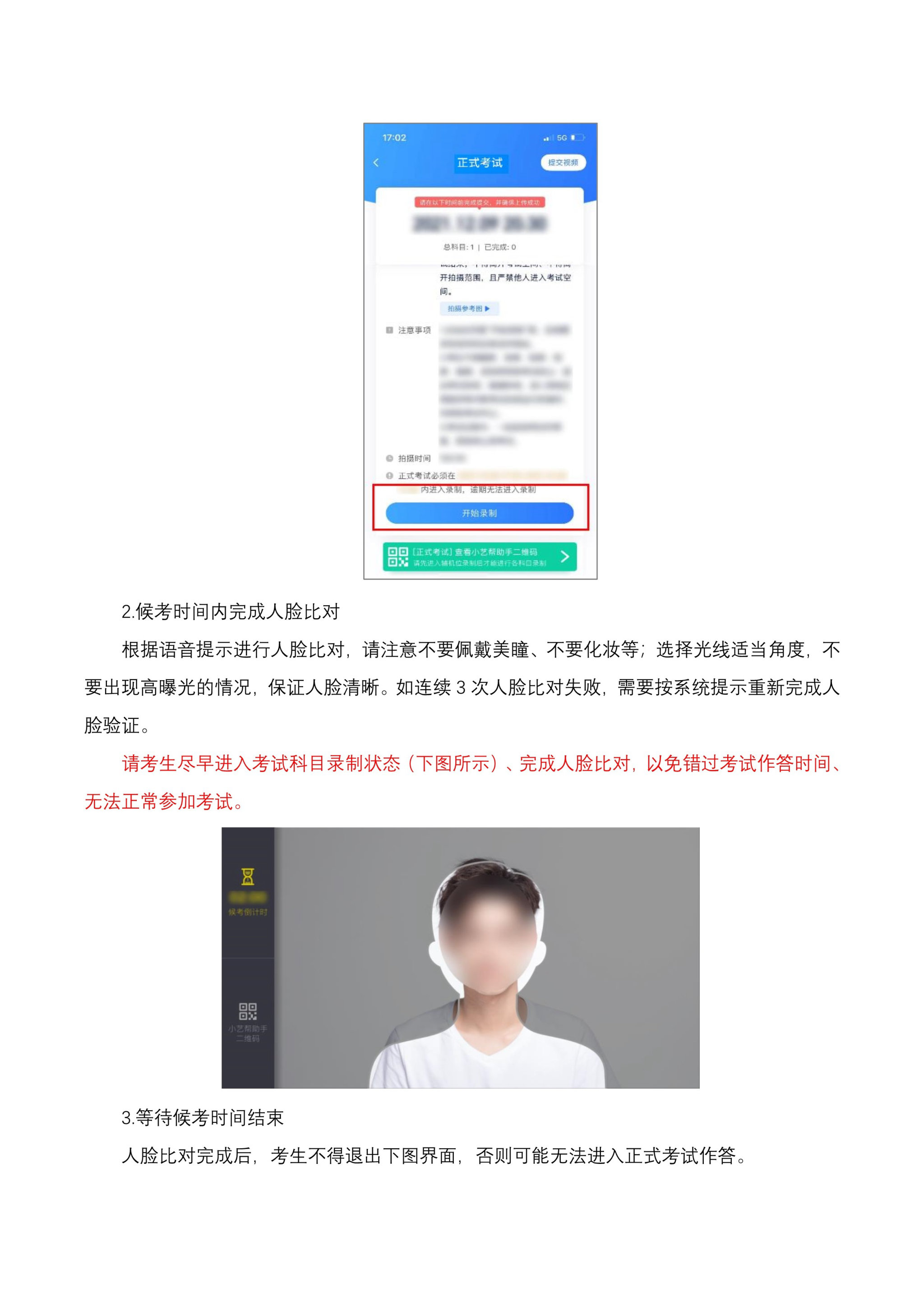2. 本次考试将同时采用直播、录播监考方式对考生考试全过程进行监督、记录,同时采用人脸识别、AI分析等相关技术手段识别违纪、作弊行为,确保考试流程科学严谨,保障考试公平、公正。